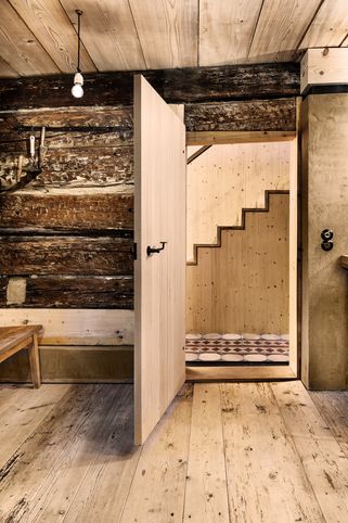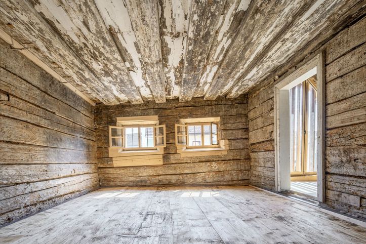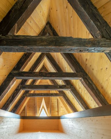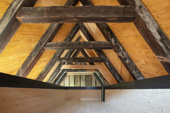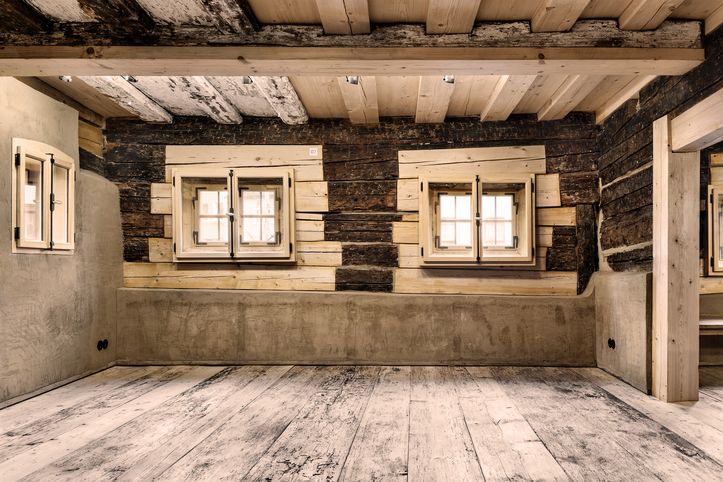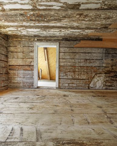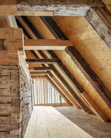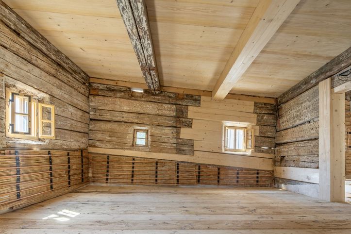 Historisches Holzblockhaus, errichtet 1486, Entkernung und Sanierung
