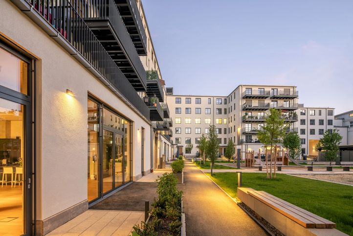 Blockrandschließung mit Wohnen und Gewerbe um einen gemeinsamen Innenhof im "Urbanen Gebiet"